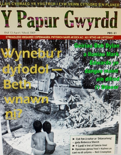 Rydym yn dymuno’n dda iddynt. Mae’n ganolog o bwysig bod y weithred o ddifrodi’r amgylchedd, o ddinistrio cynefinoedd naturiol a dynol, o chwalu systemau hinsawdd yn cael ei chydnabod fel dim llai nag ymosodiad ar y Ddaear, yn ‘Ecoladdiad’ yn wir.